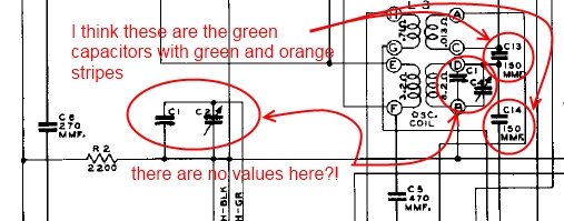 Also, I'm not sure what the other four capacitors in that portion of the schematic are rater for - they're the only ones without values. I think I've located them in the radio, but once again, some of them are the green style which I can't decipher.