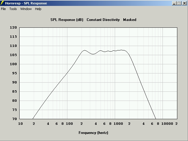 The earliest versions of HornResp could not model directivity, or its influence on the on-axis response. I understand that the later versions can, but I never have taken advantage of this feature. I have been using HornResp since version 3, and have always used it just to predict power response. On-axis response usually tracks power response at low and midrange frequencies, so a power response simulation is very useful, even without any consideration for directivity.