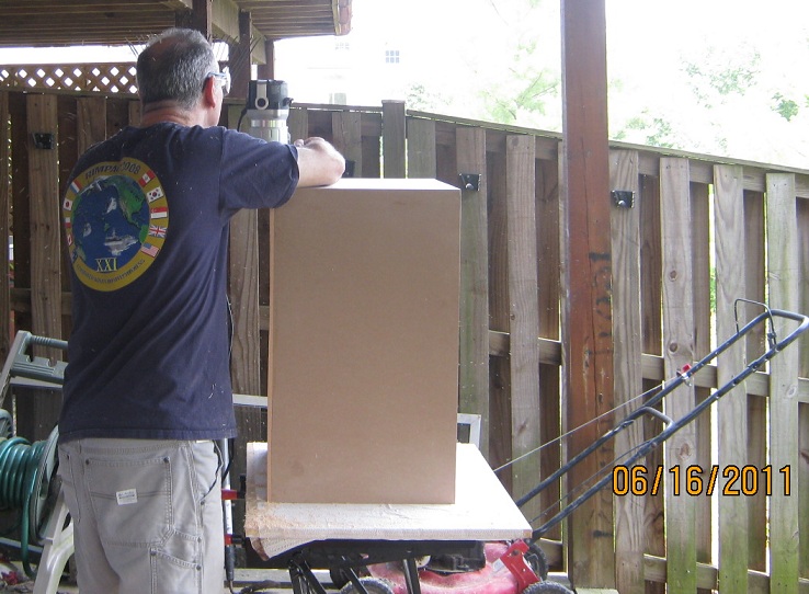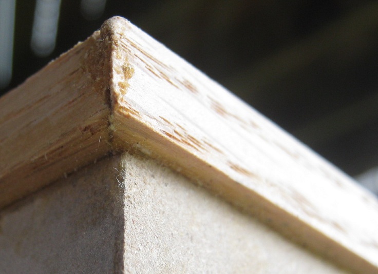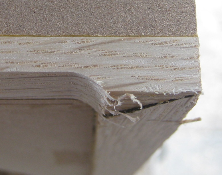 First, routered the edges of the oak trim glued to the front panel. The oak strip was both thicker and wider than the intended space to account for "variations."