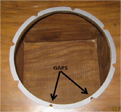 1) Clamp the gasket to the box and fill in all the gaps behind the gasket with a hot glue gun. Would seal the two screw holes that would leak. Not sure how durable of a solution this would be in the long run. However, I am planning on building new boxes when I return to the States.