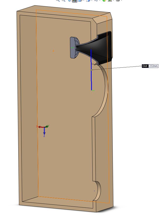 However, when i put this distance in CAD program, it looks that it is too narrow and that horn overlaps with woofer cutout ?