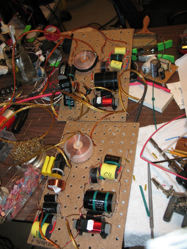2- 4th order Linkwitz-Riley boards finished today, parts for an Aikido pre-amp and plates/parts for the Mullard KT-88 amps, all together in one big mess. What can I say? It's a gift