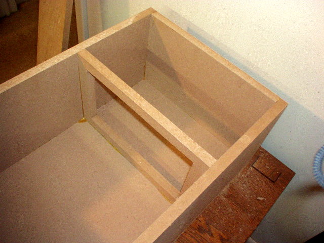 Other than that, the 4Pi is just a box, although the bracing Wayne likes to use is, for me, a little troublesome. I can't seem to cut to size after assembly. So what I do is make extra pieces cut the same time as the tops and bottoms, cut out most of the internal material, and use'm as "window pane" braces. They also aid in a nice, square, glue-up.