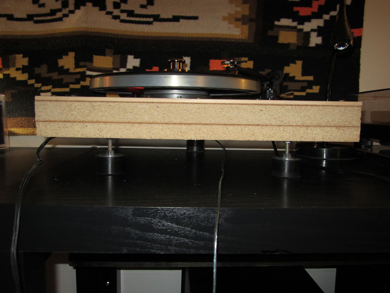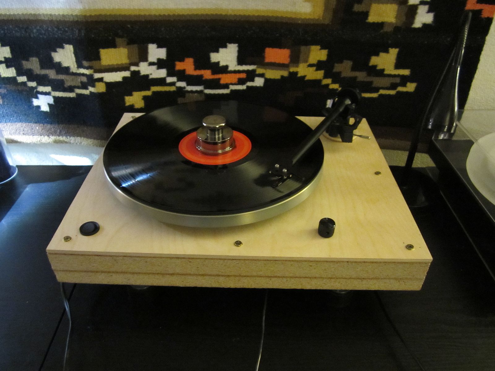 Hi Everyone, It is amazing what incompetent tinkerers like myself can do with left over parts and a lot of power tools. This is still an unfinished project. But it is full operational now. Not the best cartridge (OM5E - left over from a P-J DB III) but sound is quite nice, clean, very quiet. The motive power is from a Dual 701 direct drive TT and the arm is a Rega that I replaced on my Sota (with an Origin Live). All the lumber was lying around the shop. A piece of 1 inch MDF, 3/4 inch MDF, 1/4 inch plywood, and a roll of self adhesive cork. The only causality was a router bit. I sort of cooked it on the one piece of MDF (sticky glue apparently). Confused Now the fun part.... finishing the exterior so that it is pretty. Smile