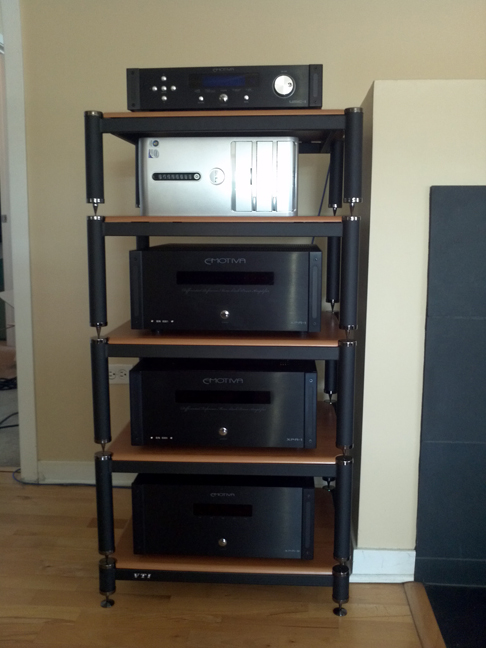 My amp stand is complete and I made 2 posters (20x30) on photoshop for above the 4pis (my and my wife's favorite bands). Oak Frames for the posters come this week to match the speakers.
