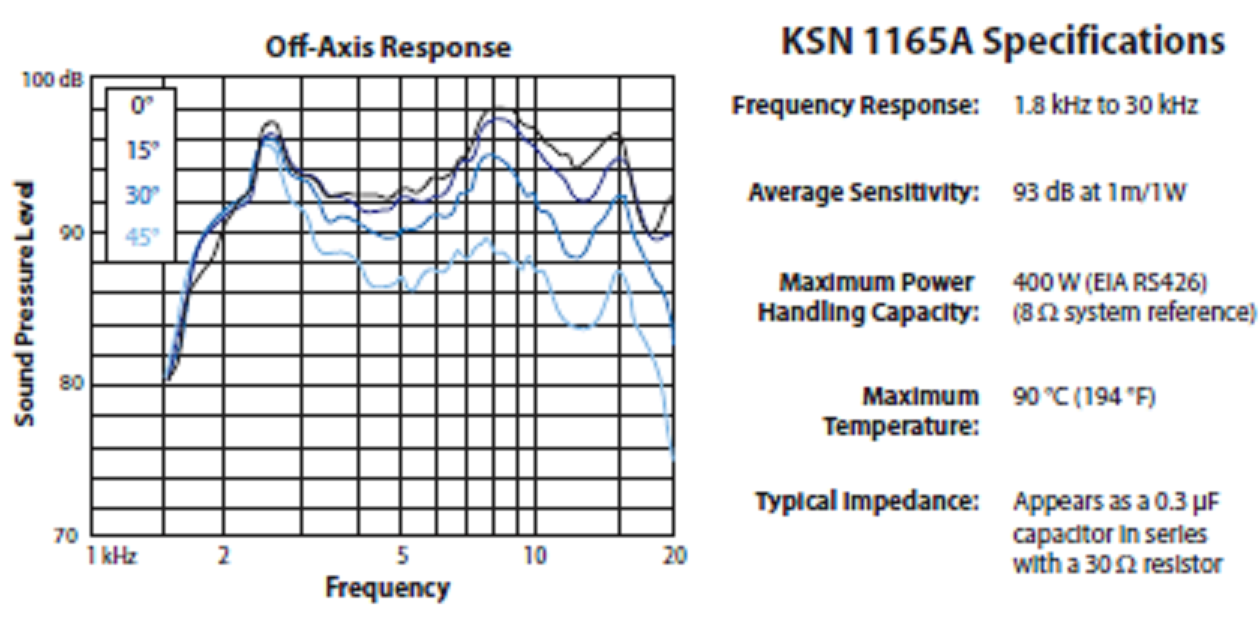 The KSN1165 looks very similar to the KSN1167 , but the KSN1165 has a larger/thicker piezo drive element. Also the horn throat is deeper and the overall diameter is larger than the KSN1167. KSN1165 is rated to about 3500-3800hz and up , while the KSN1165 is rated from 1800hz and up.