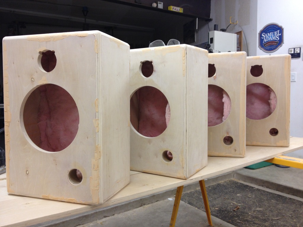 I'll be mounting the surrounds on the walls with the bottom of the cabinet at about 5'. I'm going to play around with placement before I build the wall mount brackets.