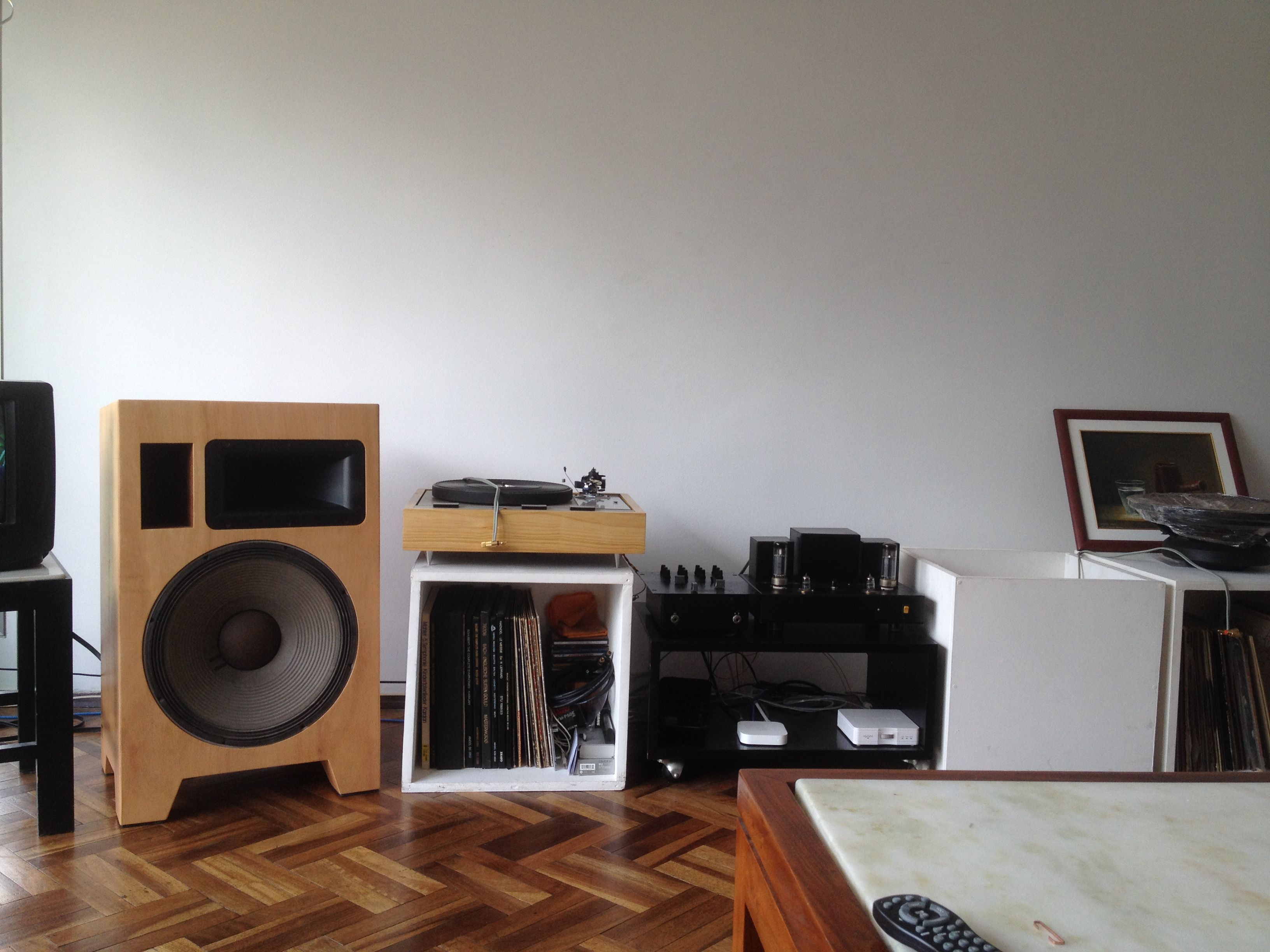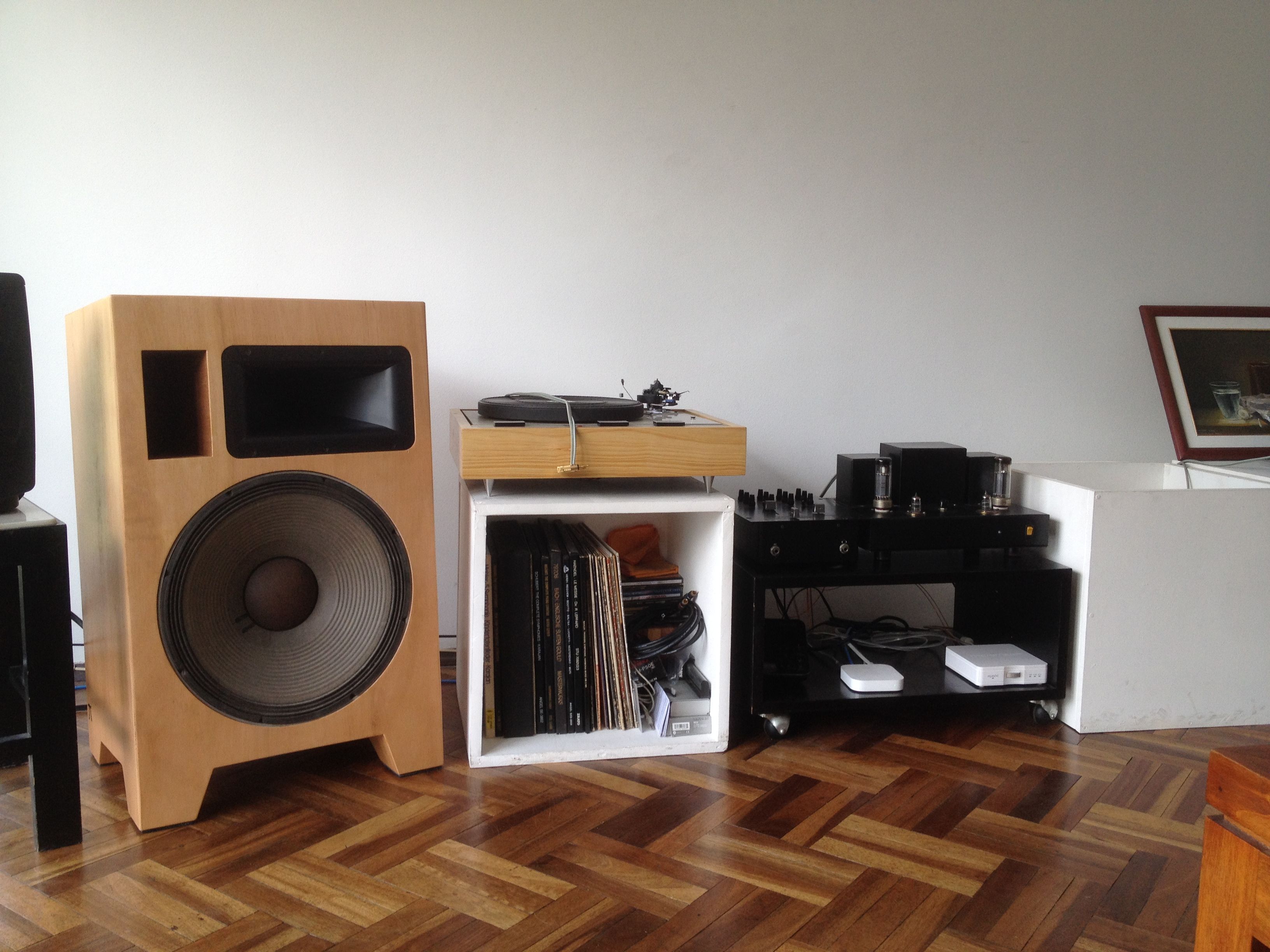 The 2% that needs to be done involves: Fixing a dent I made when moving one of the speakers, just a little part of the top veneer. Then connecting everything, some screws, some insulating and done!!!