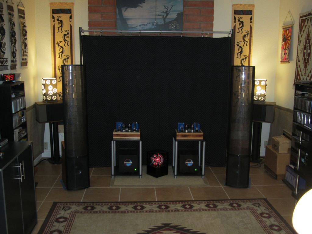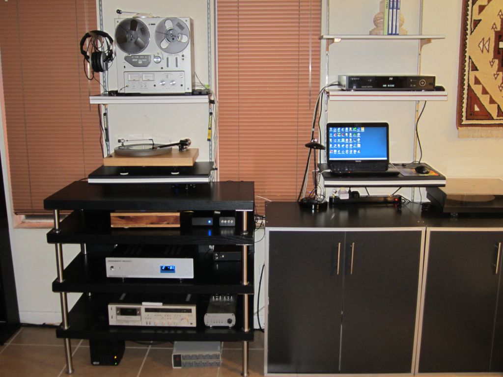 Hi Everyone, I held out until now. Now there is a PC in my system. Granted it is used to rip 24/96 wav files from LPs. So maybe it isn't so bad. Then the wav files are sent back to a reel to reel recorder. That way I can remove any serious clicks. Even on new LPs you can get one or two. The other new item in my system is in the third photo. If I were an unscrupulous high end audio guy I might say it improves the ionic balance of the listening room by energizing the randomized photons into to coherent patterns that assist in directing the electrons in the sound waves as they reflect from the boundary layers. Laughing However it is just something I had in my shed that looks cool.