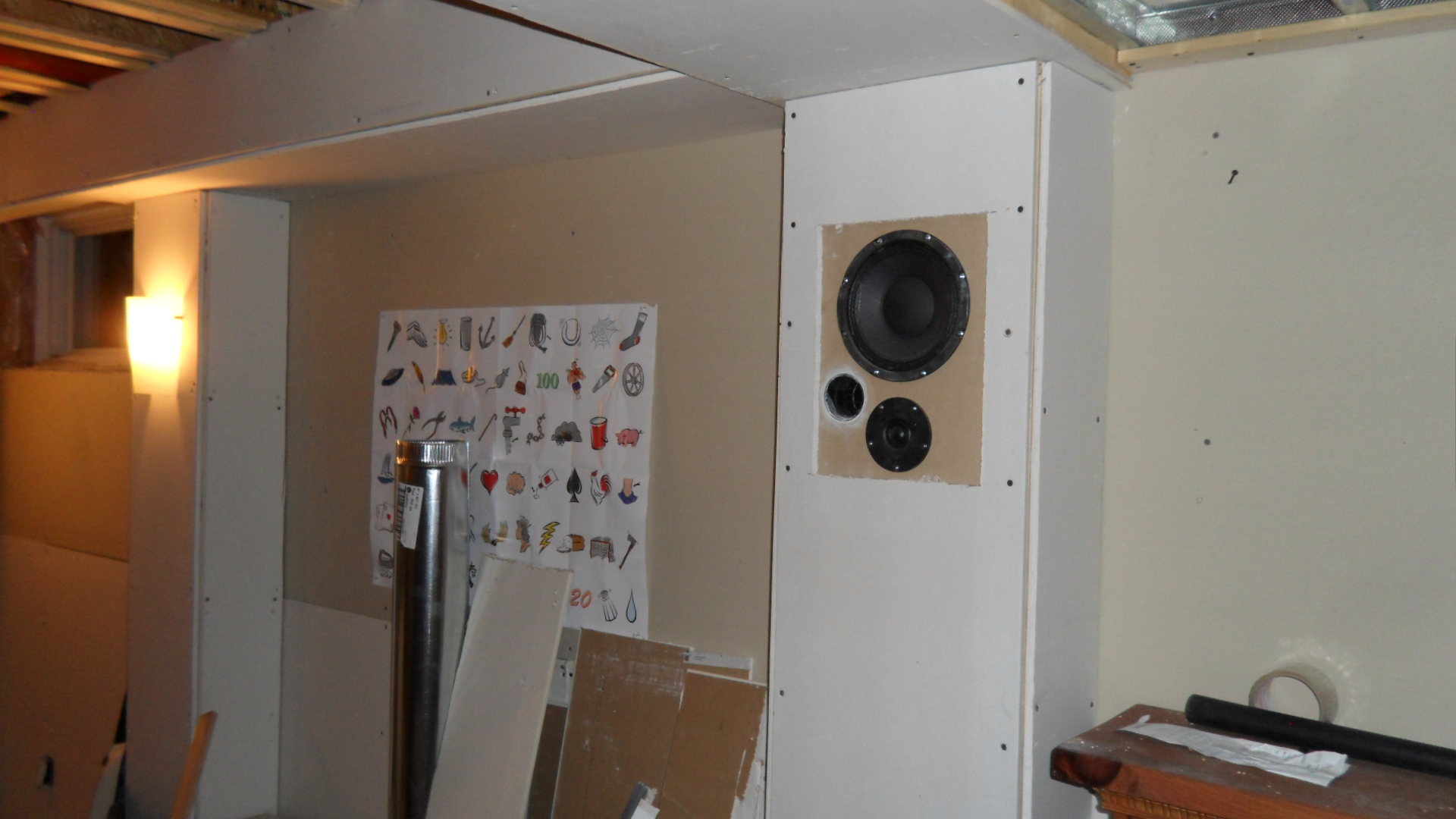 I started buildin my cave man with high WAF. I was able to include PI speakers but I had to use creativity to integrate. I integrated left and right(4 PI) into columns on each side of the screen. Center is behind the screen (4PI sealed) - I had issues in compromizing here. Side columns include 1 PIs (hear level)and I have two others 1 PI at the rear (ceiling) to make a 7.1 system.