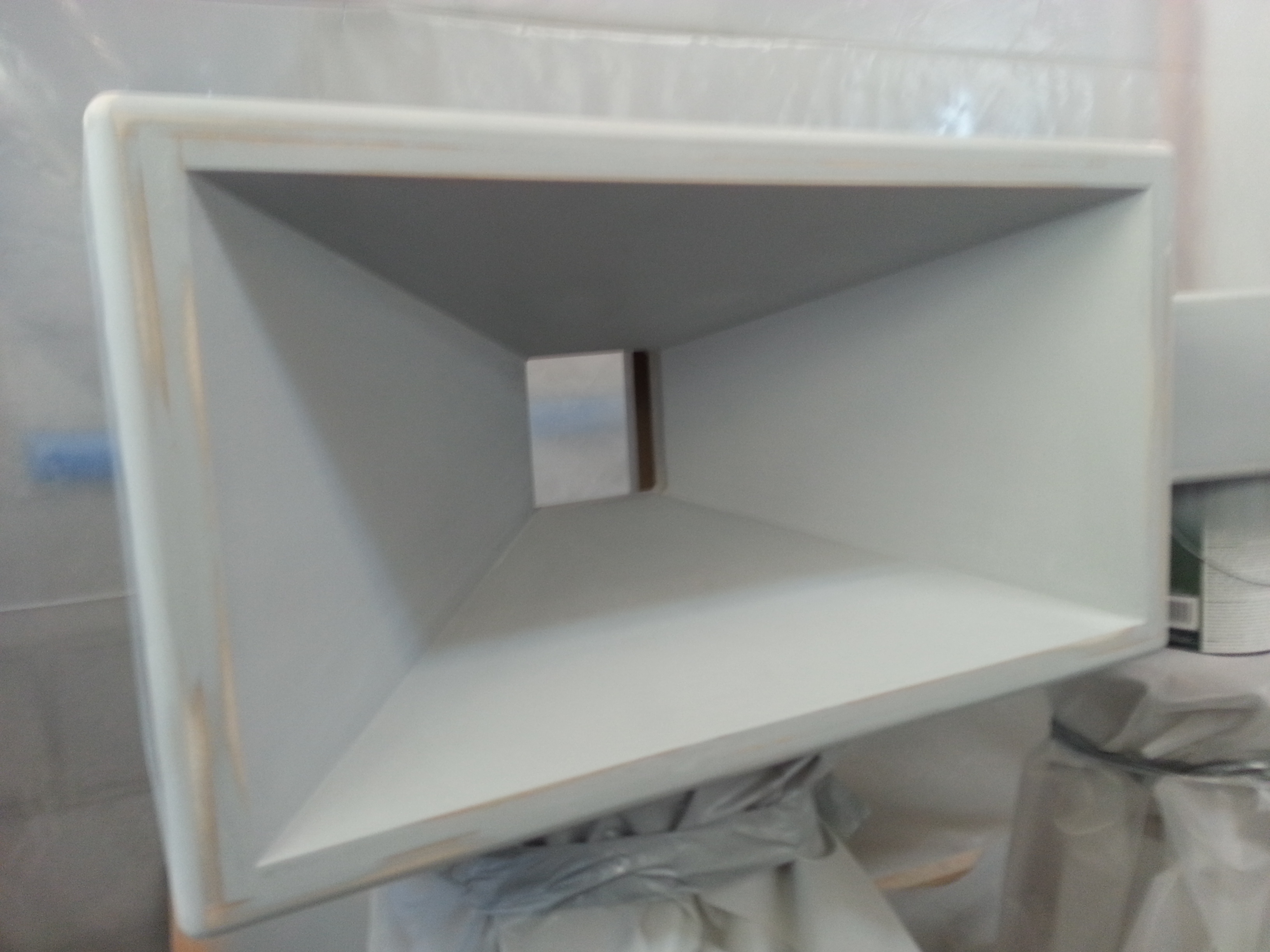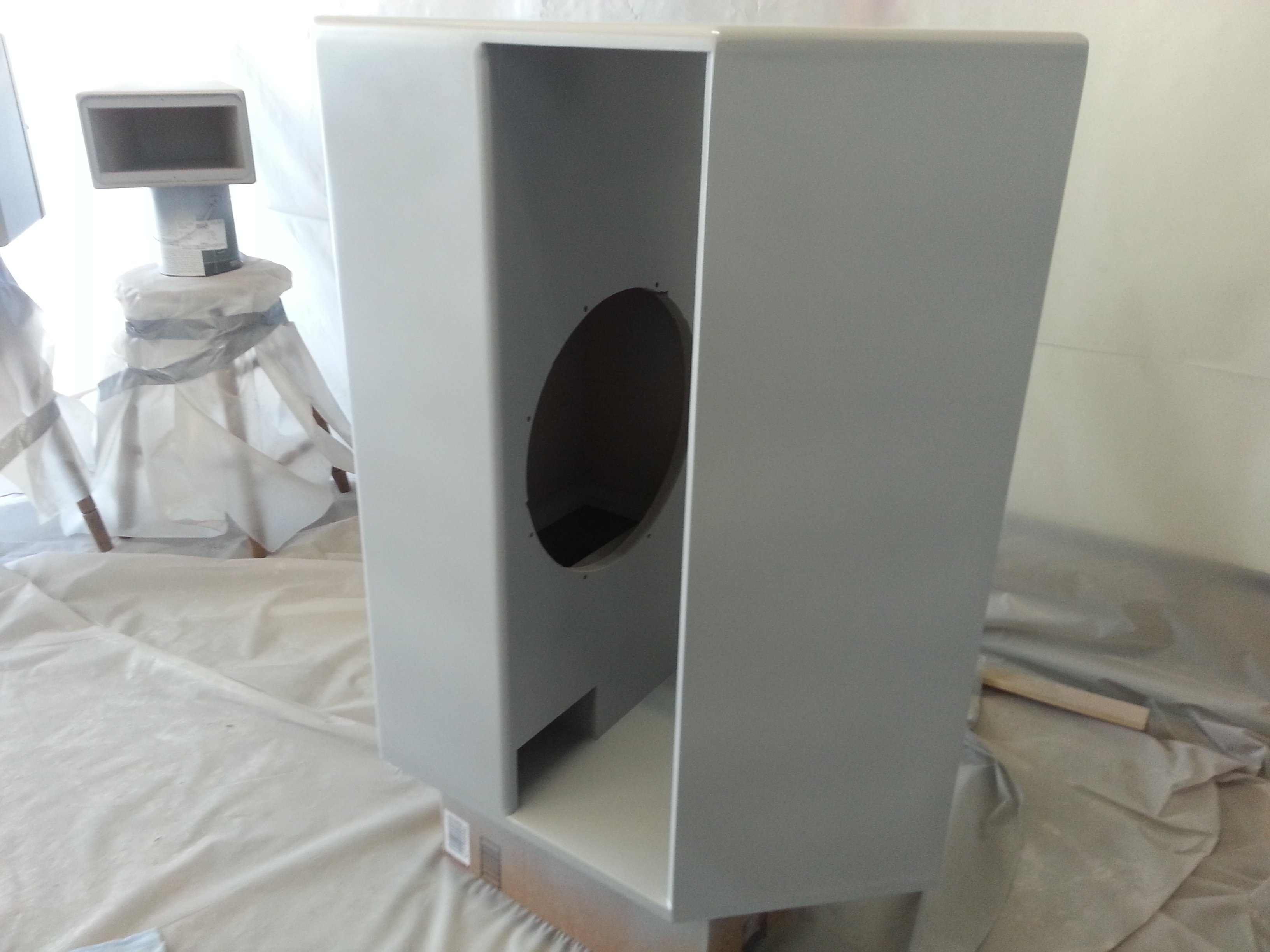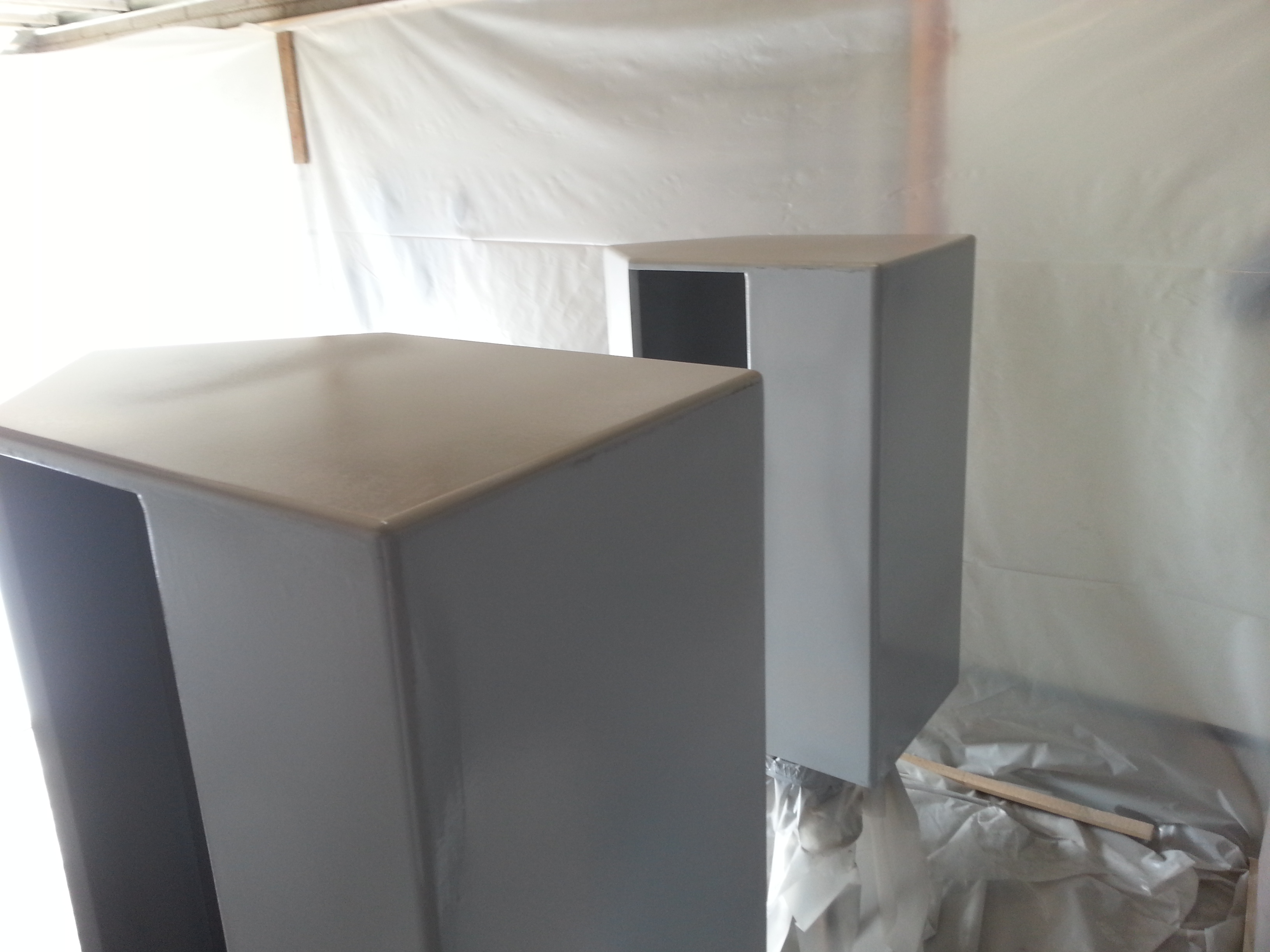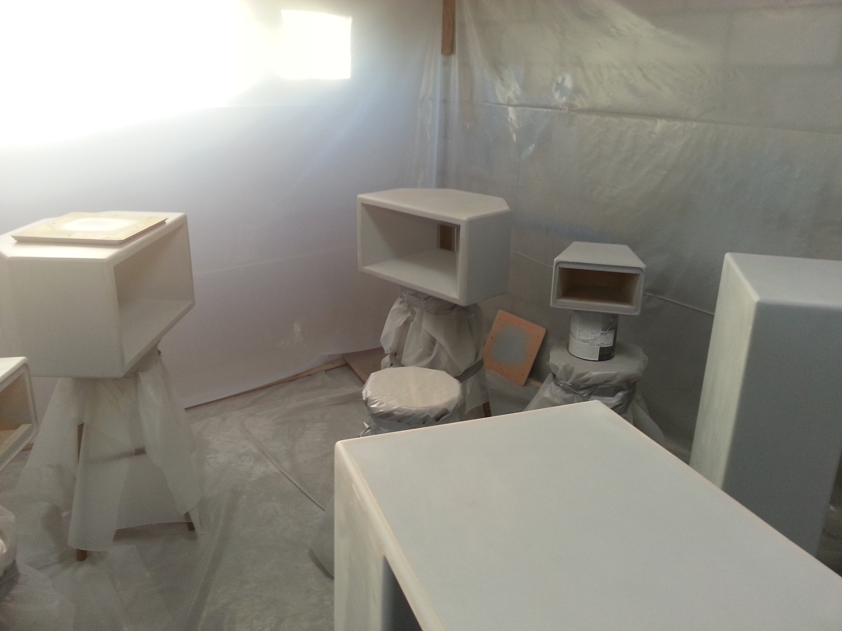 First two coats primer in my home made paint booth. I am pulling each piece out one by one for sanding today, then one final coat of primer...