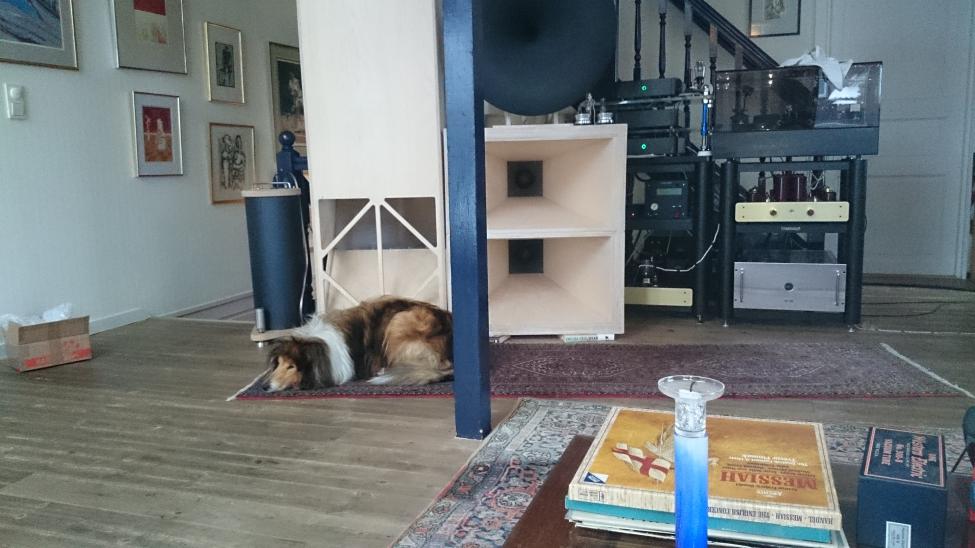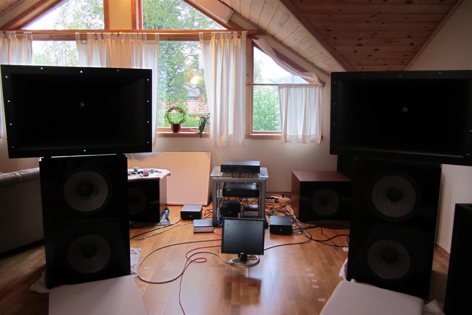 Obviously with such a distance here between my K-402 horn and the front loaded horn there will be lobing also using a single. But the thought of using another horn to increase lobing and thus minimize reflections is sort of contradictory to my acoustics mind where I always want to avoid lobing as far the possible. More lobing may lead to less reflections for some frequencies but that also means the reflected energy will be more coloured. There will be nulls somewhere with less reflected energy and more energy at the other frequencies. I will of course treat the room acoustically but treatment will never completely remove the differences. An especially the floor is very difficult to treat properly.