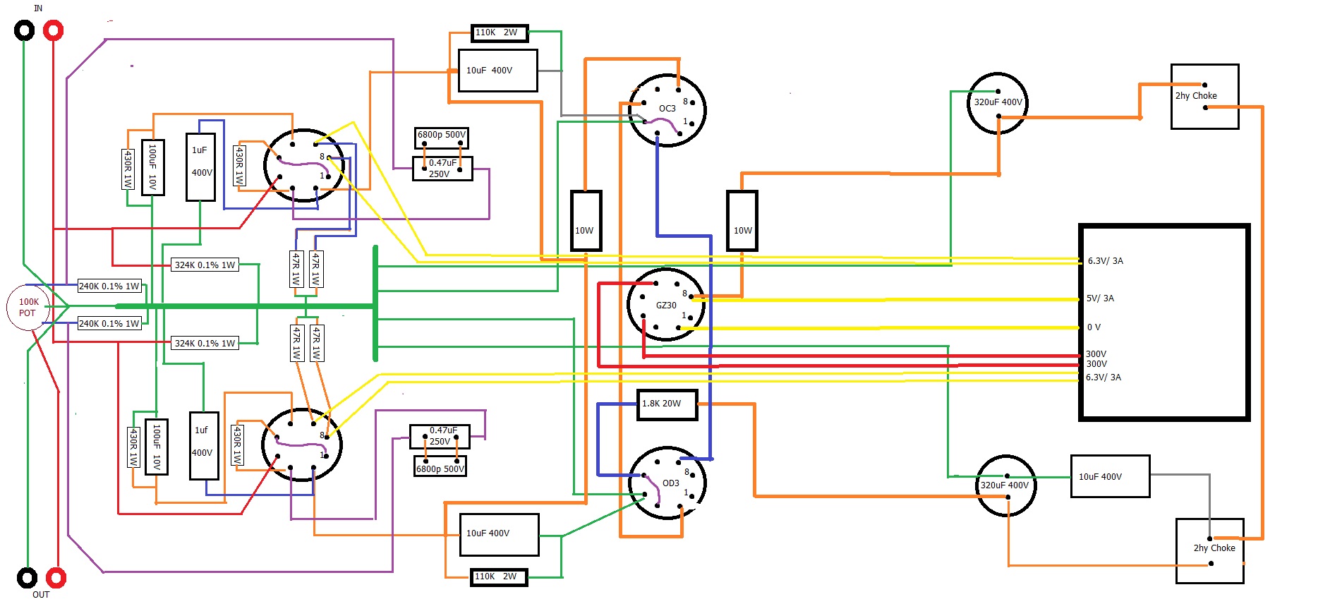 Anyway, it's a BEZ Q4B preamp that comes from China, point to point wiring handbuilt by the designer, and has gotten some pretty good reviews from the people who have bought it over the last 10-12 years. It's simple, I can kinda follow a schematic, but I always layout a wiring diagram to help me visualize. Actual layout I can do, just the wiring bit helps me not screw up. So here's a few photos of one of the preamps, it's innards I could find, the schematic, and my little diagram. IF anybody has the time to check my wiring diagram I'd appreciate it.