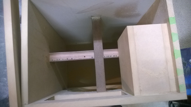 Here is one of the baffles with the T-Nuts installed. I made sure I glued them in. Before I put in the T-Nut, I wet the area with a paper towel, added a drop of gorilla glue, and clamped them in.