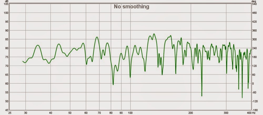 Measurements with ecm8000 mic (listening position): very poor low-end due to room modes and resonances: