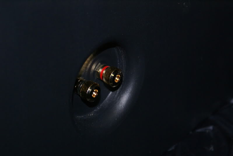 The binding posts are on a panel that requires a 2-1/8" x 2-7/8" cutout.