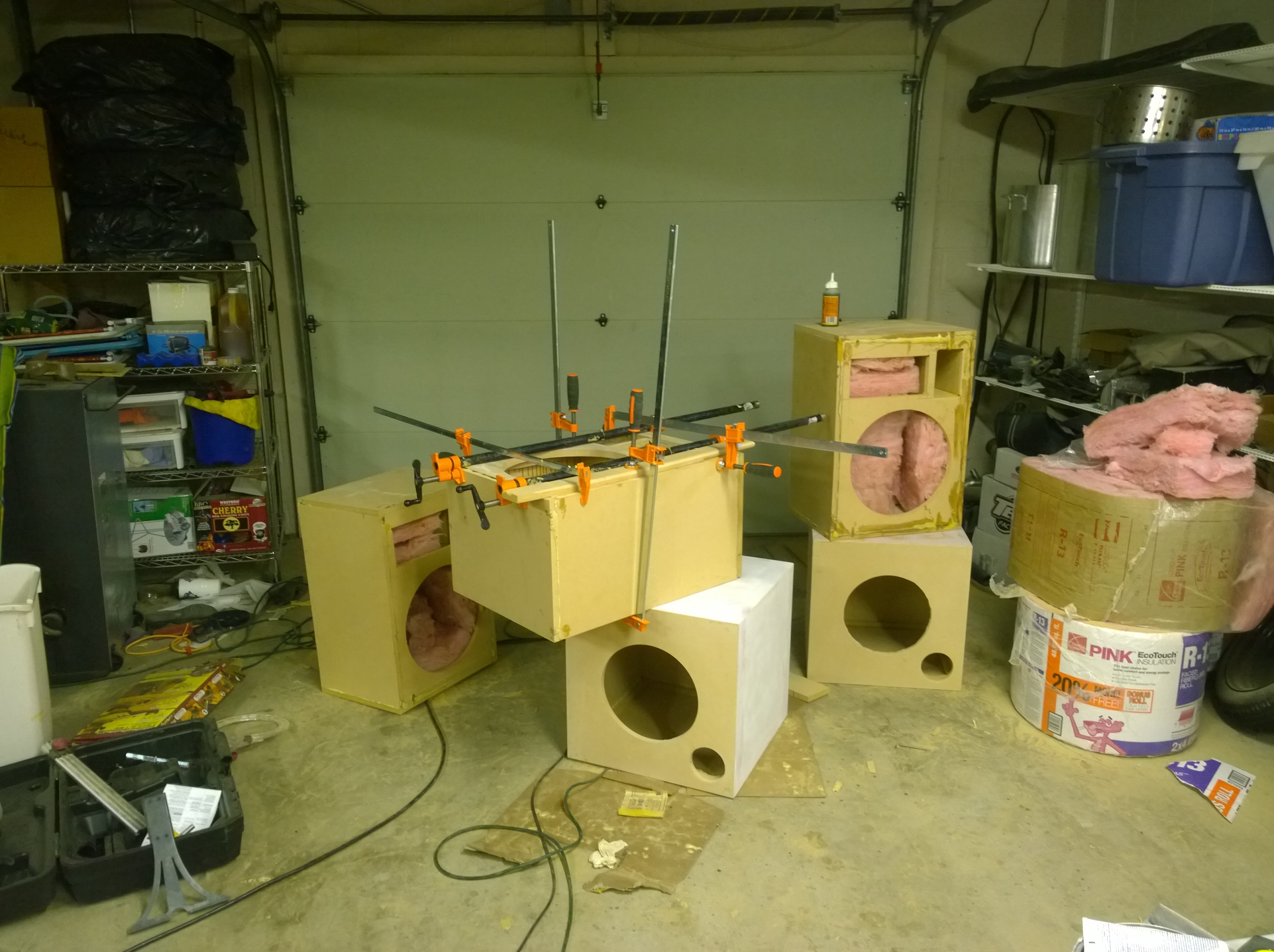 Progress continues, all of the ports a glued to the baffles, all of the cabinets have the bracing in. just need to glue baffles in, with only six camps I can only glue so much at a time.