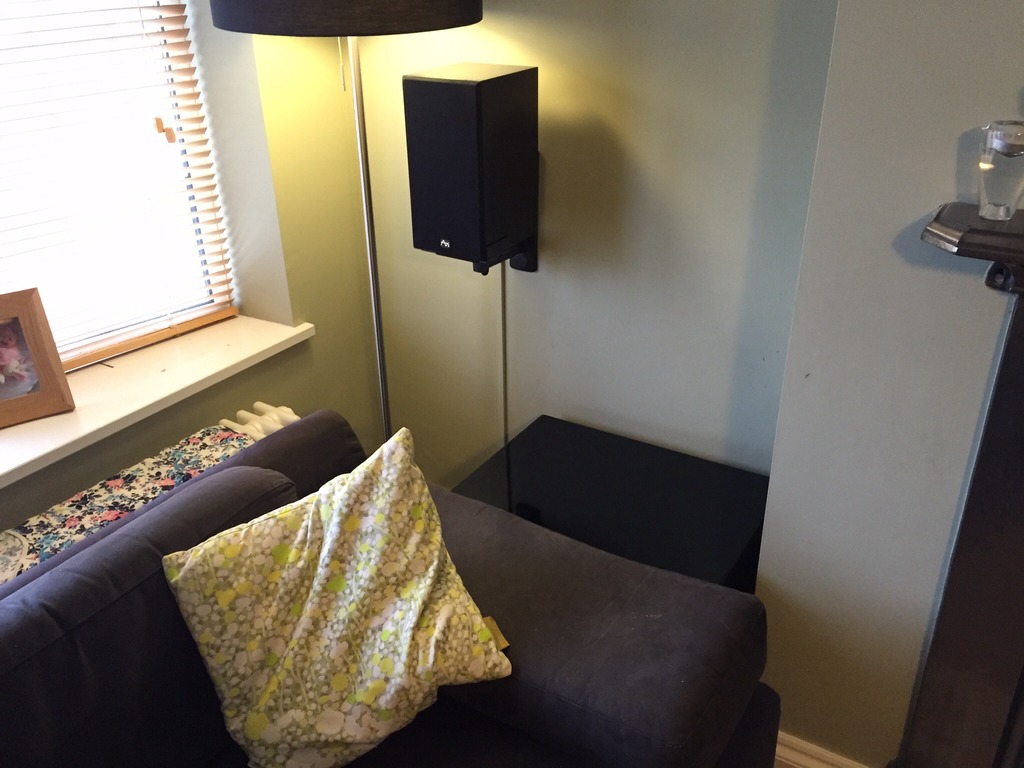 They are quite different drivers so not the best match to make a stereo pair, I also don't have the space (or wife approval)to put the pair up front "flanking".