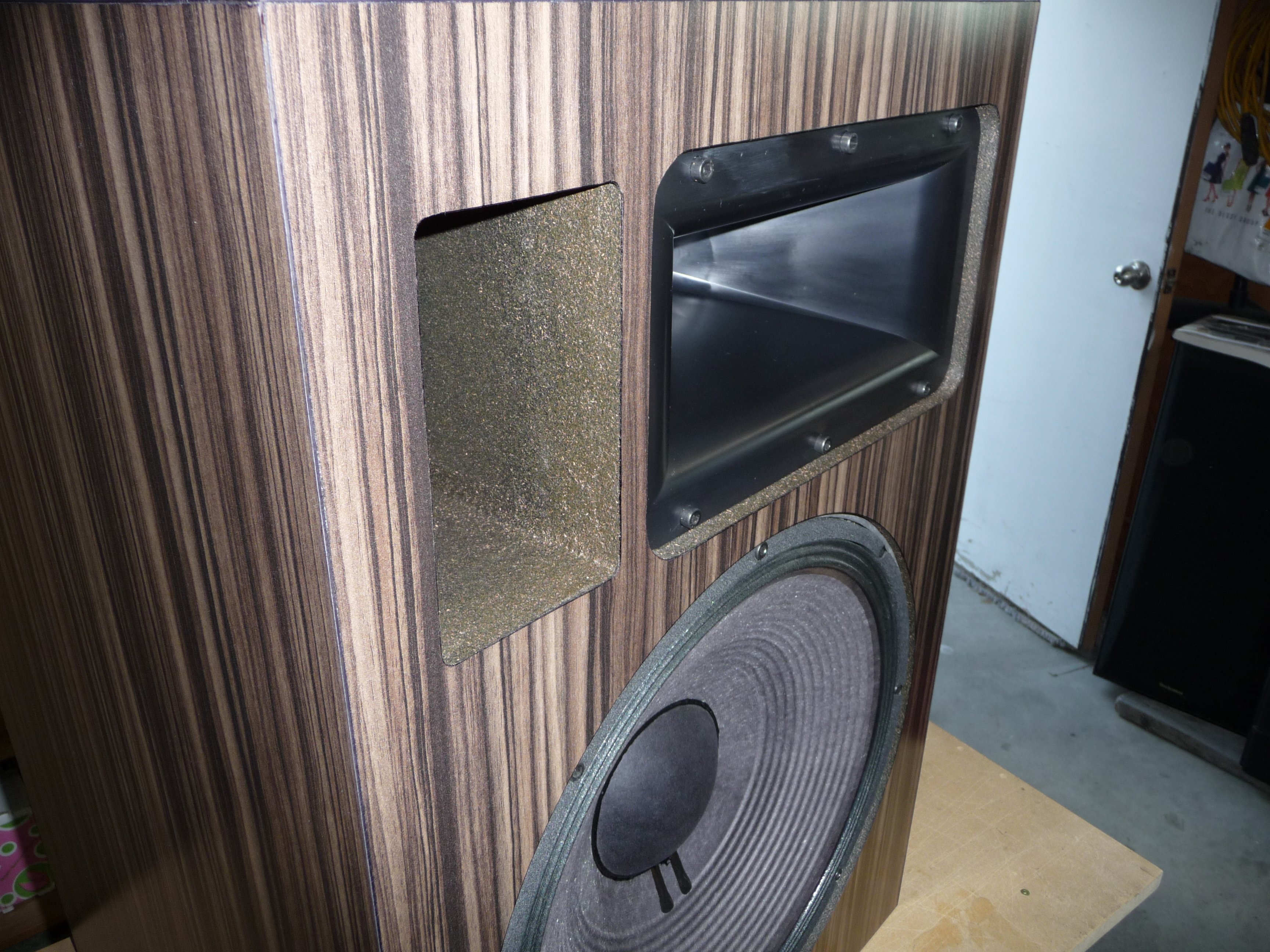 I found a nice deal on the JBL 2226 woofers so I pulled the trigger and ordered the crossovers and horn waveguides from Wayne; I then proceeded to acquire the DE250 drivers as per the design. I decided to give the waveguide and woofers a countersunk look by simply making the front baffle double thickness, mounting everything to the face of the inner baffle and then routering the outer baffle to fit over everything. I also modified the cabinet design a touch more with a double-thick rear wall as well. These things weigh a ton, but are solid as a rock with the recommended inner bracing.