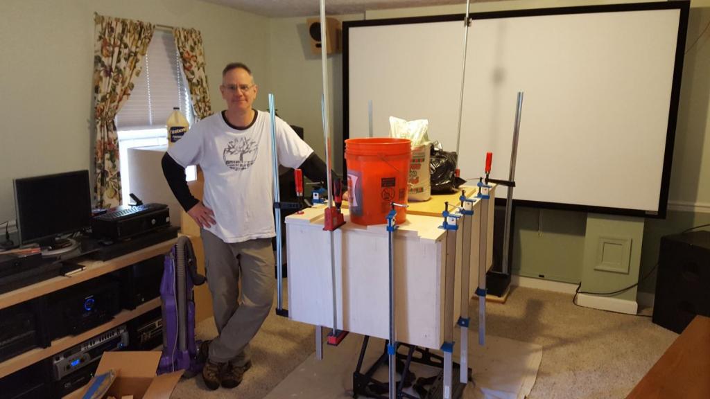 Haven't posted in a while. System has changed significantly. I bought a pair of JBL Pro Cinema 4645B's (w/ JBL's 18in 22242H driver). The cabinets were huge (39¾ in x 26½ in x 17¾ in) so I designed a new speaker that combined the 4Pi's and the 4645B's, with a bit of a twist.