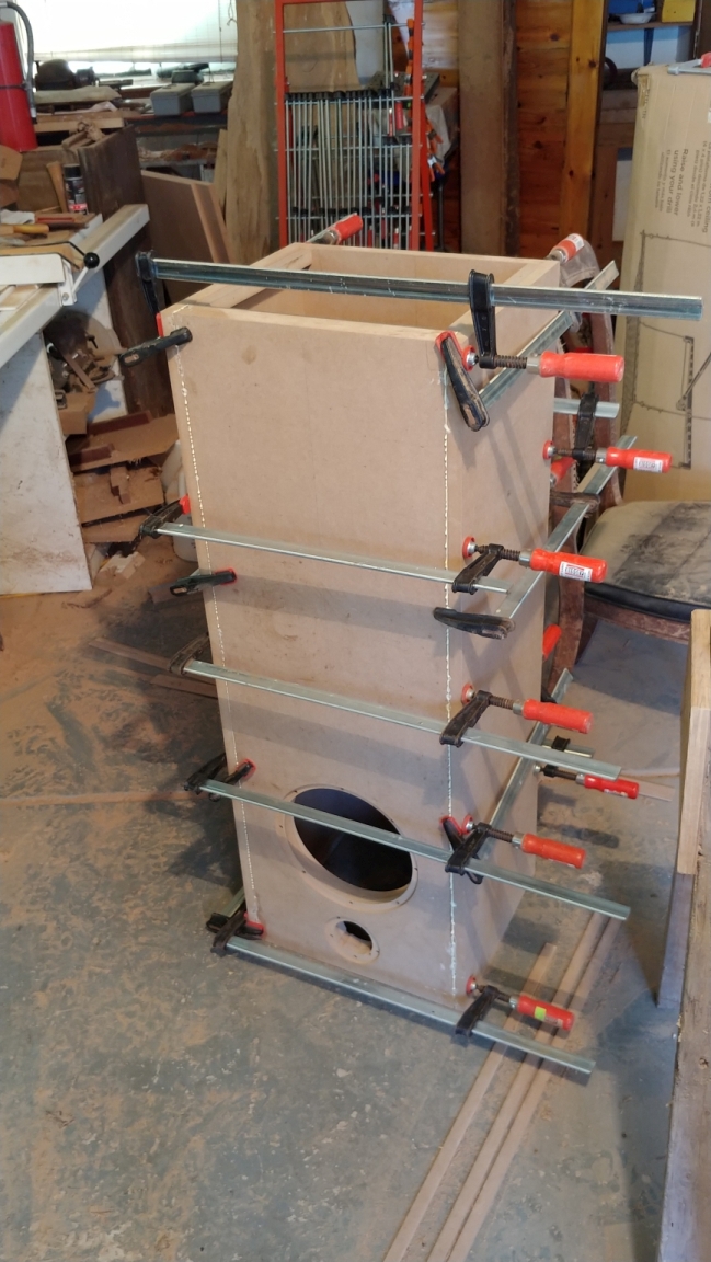 Since the back and baffle are fully captured, it is important that the speaker carcass be glued up so the back can be installed last - in other words, the carcass cannot be allowed to twist out of shape while the glue is drying.
