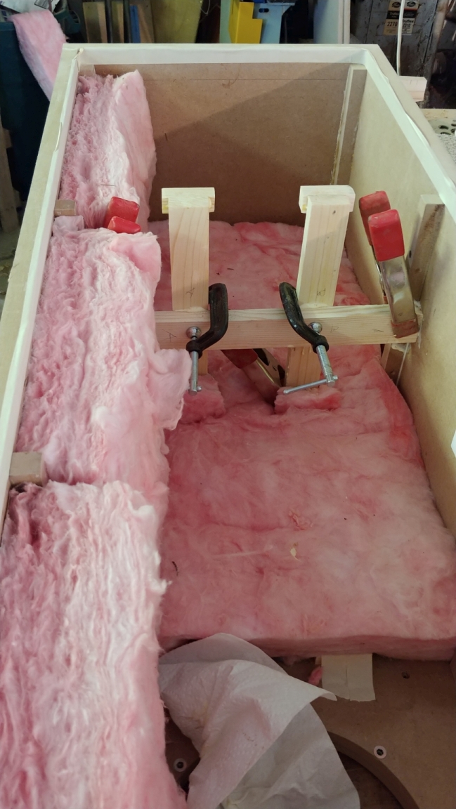 The off cuts I said to save in an earlier post are used as spacers, and clamped between the sides.