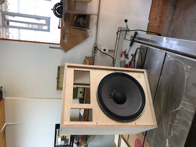 Working out a design to fit in living room. Hoping to be able to disguise them as end tables/plant stand for (WAF). 3 Sides will be wrapped with vintage grill cloth. Top and bottom capped with solid maple or walnut. May add some small trim pieces to finish out. All dimensions will be exact to Wayne's plans.
