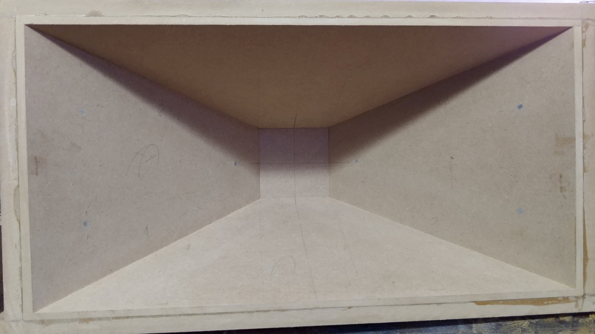 The horn box is a bit more challenging than it looks at first glance. Clamping the 45degree sides will be very difficult. The method I detail below was not my first choice, but it worked quite well and was of minimal hassle. The best method in my opinion would be to rabbit grooves in the top and bottom that are a snug fit for the sides. This would allow clamping the angled portion without having to worry about everything getting pushed out of alignment. If you opt to get the parts CNC cut, I highly suggest this as a method. Setting up a router guide/jig as way more hassle than the method I used, but if your work style goes in this direction, follow your urges.