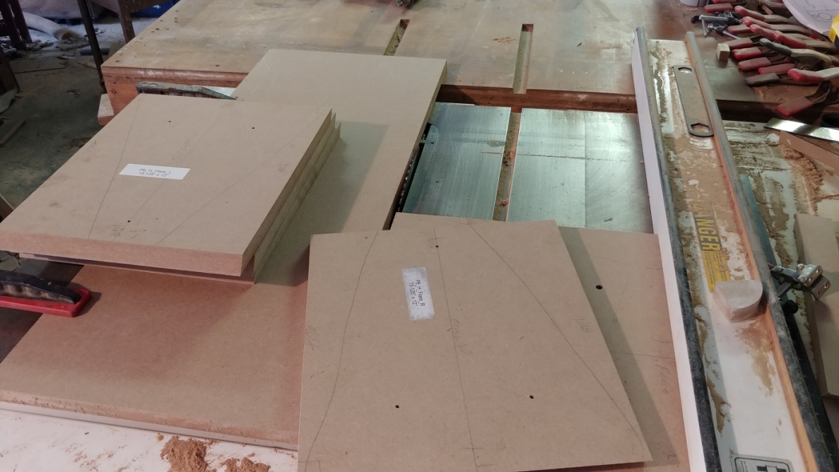 Many of you probably noticed the flare sides where rough cut as rectangles rather than as trapezoids. At first glance this might appear to be grossly wasteful of materials. It is, but the offcuts will be used later as bracing, mitigating some of the waste. The main reason they are cut as rectangles is so that the mouth and the throat are parallel to each other. This would be very difficult to accomplish otherwise. This ties back to my earlier post about constantly asking myself "how am I going to cut that, and how am I going to install that." Planning the cutting and assembly during the design stage is a huge benefit.