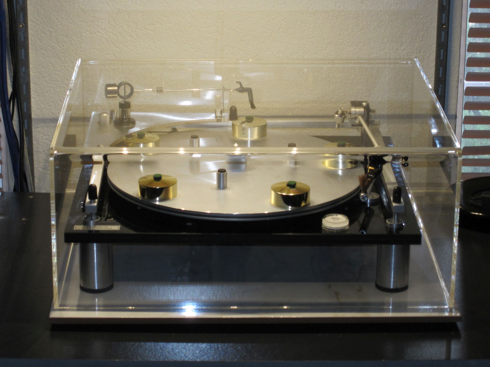 Wow, that Transcriptor Saturn turntable is something to look at! I quite like novel looking audio items. Is it one of those that has a strobe light so you can tell that it is turning at the right speed? Is the cover perspex?