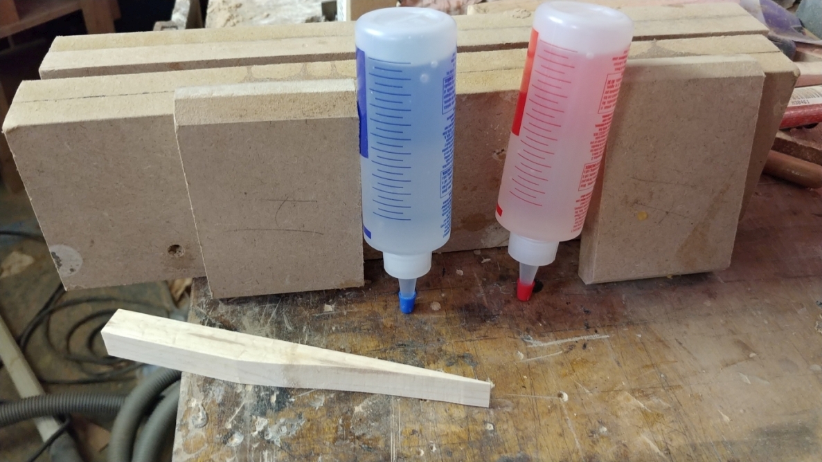 The braces are then trimmed to length. Note the stop block is making contact with the taper, not the end.