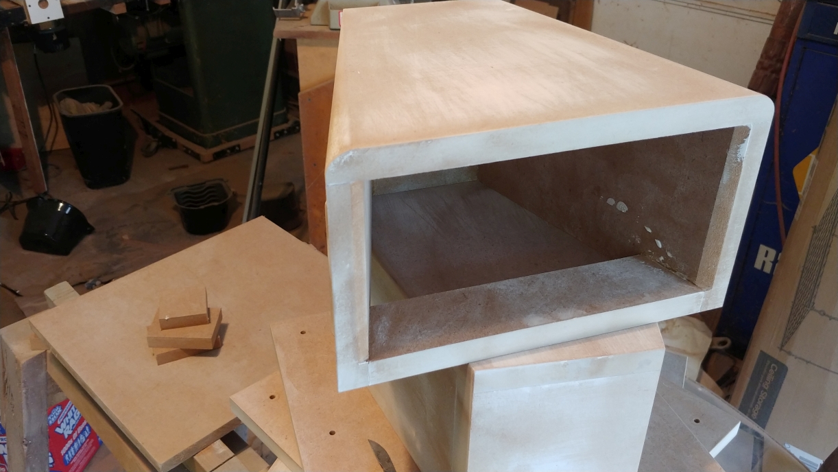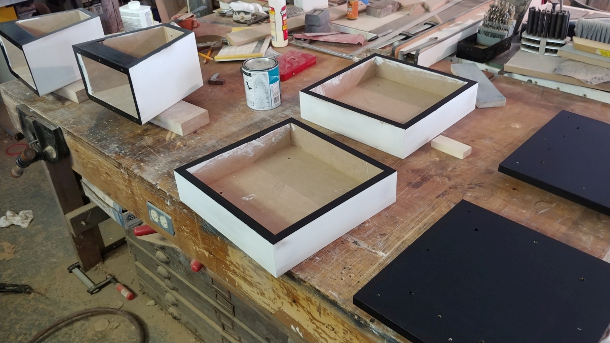 I was sure I had taken pics of them, but I seem to have misplaced them. So instead I offer a pic of the parts when I was painting the edges that are hidden. As a bonus they include a sneak preview of the tweeter boxes.