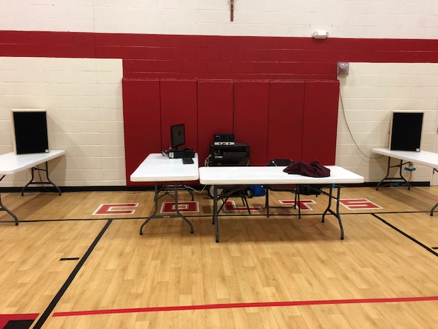I am providing the sound system for a fall festival/dance we are having in our school gym. The gym is fairly small and there is only about 5 feet of space beyond basketball court to the block walls. Will be setting up in the narrower side under the basket.