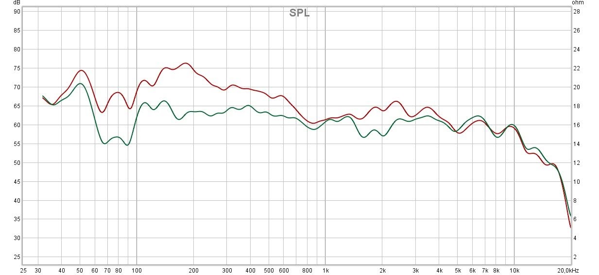 With REW software, I measured the differences (from listening position). Red is before EQ, green is after EQ: