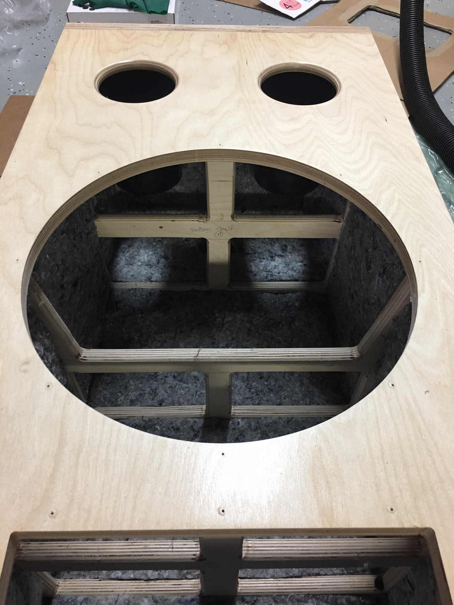 I was contemplating completing the project, but it hit a snag. One of my JBL 2226H driver "buzzes" at low frequency (120hz and less). It may be the dust cap, it may be the coil. Don't know, but I don't plan on sinking any more money into the project.