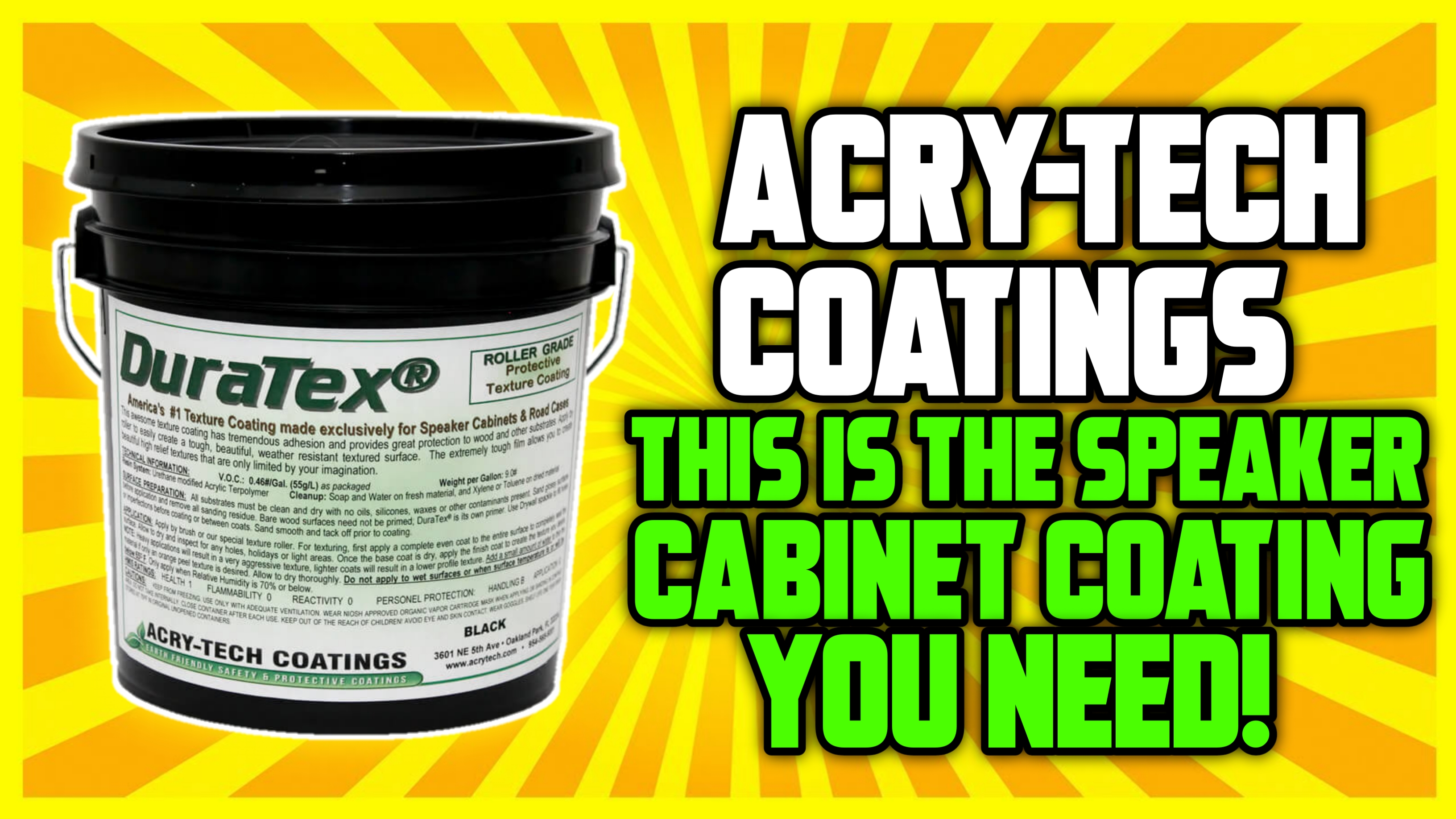 Please have a listen to Miki to learn about Acry-Tech and learn about the new formula of DuraTex that makes it stand out from their competitors. From car audio, home audio/theater or Pro Audio, DuraTex Coating has you covered. Wink