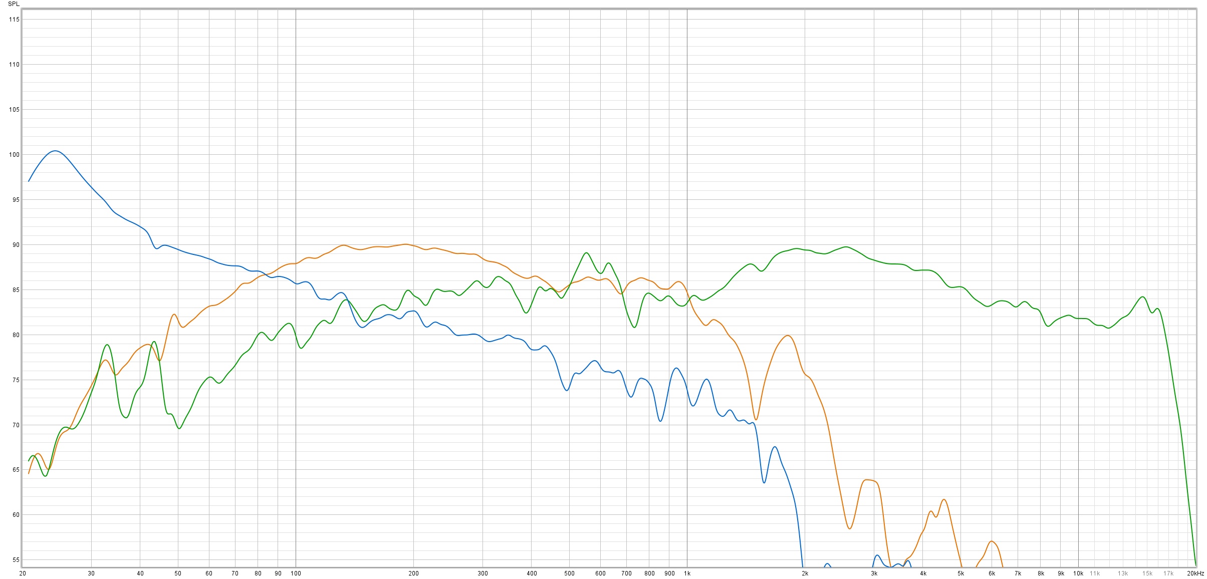 The SBIR anomaly is really pronounced in the measurement you showed with the speaker lying on its back. I see this often - it's kind of a textbook case for why to use flanking subs - because many speakers are pushed back directly against the wall behind them, or maybe just a foot or two away from the wall. This is a common placement for speakers, because it is a convenient use of space. Most people don't have rooms large enough to pull their speakers several feet out into the room. So it results in that tell-tale SBIR roller-coaster between 80Hz and 120Hz. Pull 'em out a little further and the notches shift lower, but they're still there.
