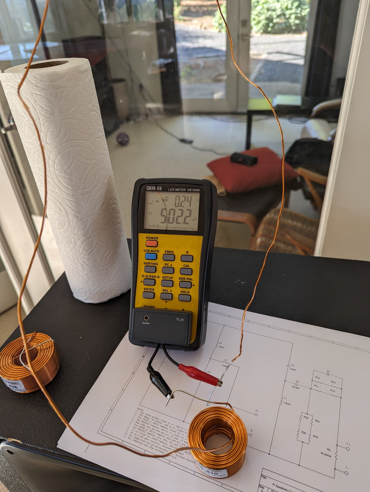 Parts Express did not have the 15ga. Jantzen inductors in 0.5mH, so I ordered them in 0.55mH and unwound them from the inside until I achieved the desired value.
