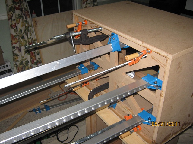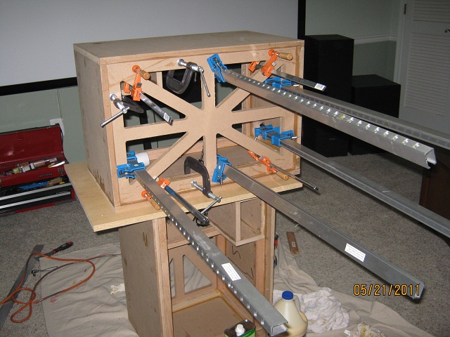 Final pictures for today, gluing in the back baffle (solid 0.75" baffle will be glued to this cut-out baffle).