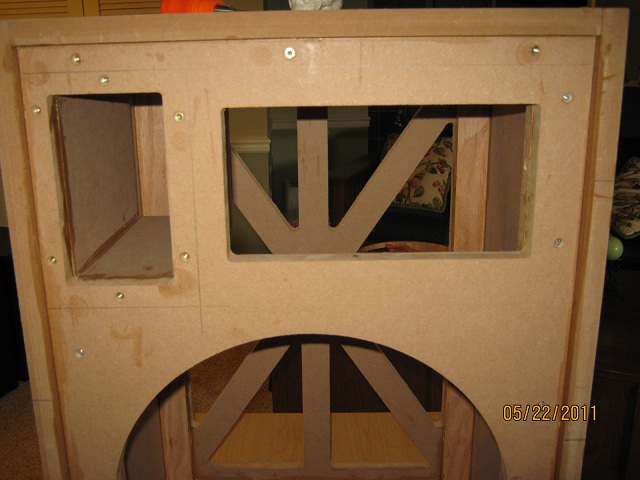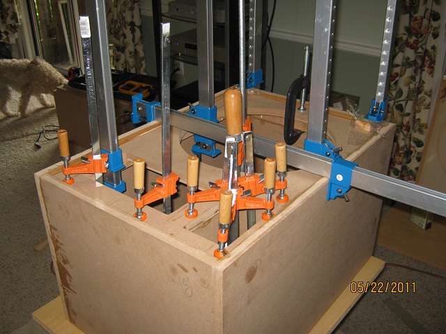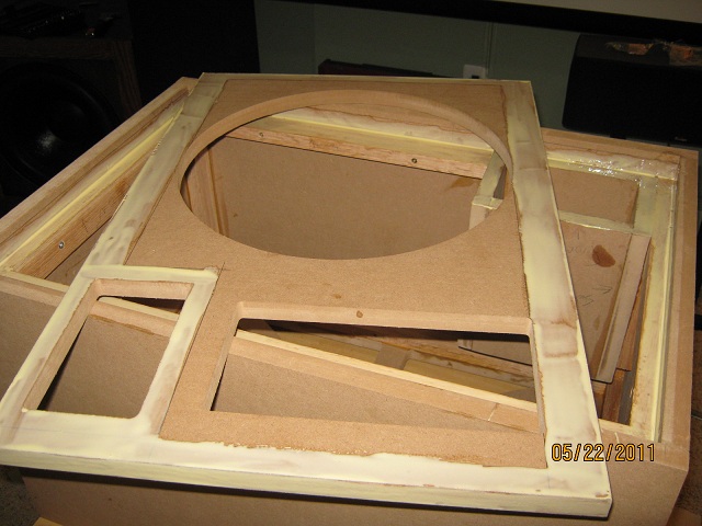 Was able to get the inner front baffle glued/screwed before I had to return to Newport for the week (left nice warm Maryland for cold, drizzly Rhode Island Sad ).