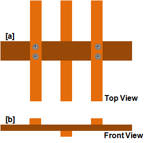 Next weekend I will add the bracing. I am thinking of using one .75" x 2.5" [a] oak piece side to side w/ three 0.75" x 1.5" [b] oak pieces as shown: