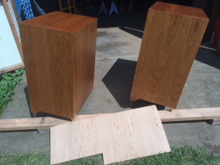 You can see the raw cherry veneer laying on the ground in front of them.