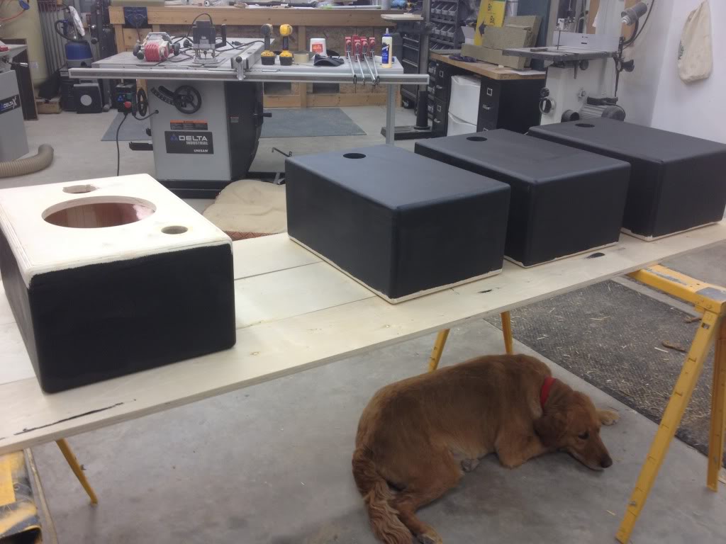 I'll run a roundover bit over all the edges and slather duratex on for finish. I used the same method on my 2Pi surrounds.