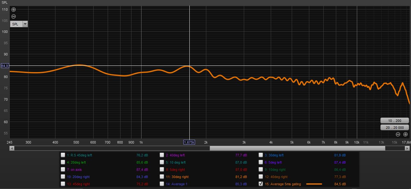 Took measurements with my turntable going from -45 to +45 degrees, and with 5ms gating to remove most reflections from midrange and up. Horizontal power response looks good to me, and I think this correlates with what one is hearing if listening at distance in a reflective room as mine. There is a problem with flutter echo in my room and I hat to pull down the area from 1,3k to 3k with eq to get it balanced to my taste. This has been the case with almost every speaker I have had in this room.