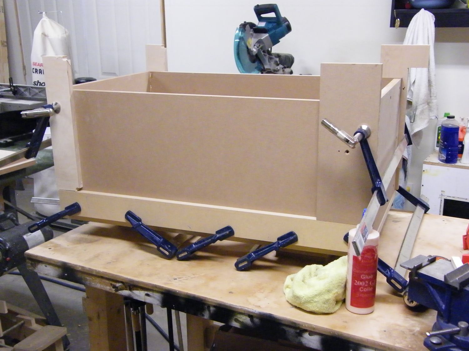 Now it's time to build the box and brace it. I started by gluing the top and sides to the baffle then added the bottom. Clamps were left on for a few hours and the boxes left for 24hrs before being handled.
