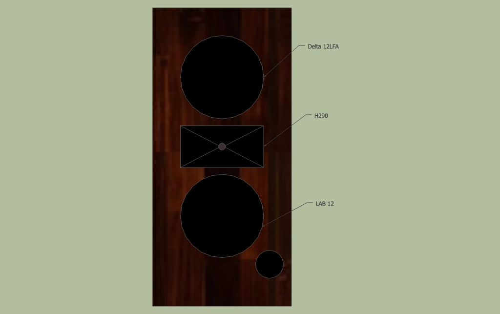 How about if I put them in one large cabinet, with internal volumes divided as appropriate...? Please see attached pic. The Delta 12LFA should go down to 100 Hz in a sealed box... yes?
