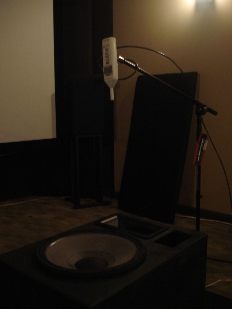 As for the HF, you have the microphone positioned exactly right. In fact, it will be pretty much the same even if the microphone is moved towards the top or the bottom of the box, until you reach the point of the vertical nulls, which are pretty far apart. See the following thread, and click on the "Vertical Nulls" link for a video of the measurement process (just like what you're doing):