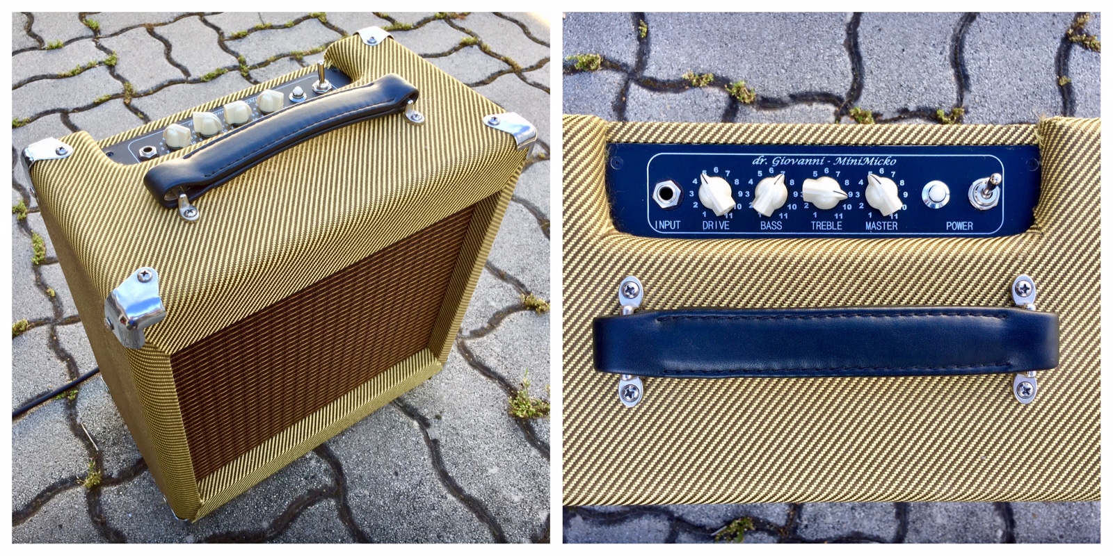 Practice / recording combo guitar amp, one channel, smaller ("Tweed Champ") dimensions, 8" speaker. The goal was the "tube" sound on lower volume and power (3W).
