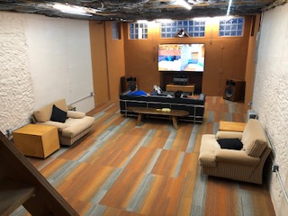 That looks like a sweet setup. I think basement acoustics can be a nightmare, so good on you for figuring out how to make it better.