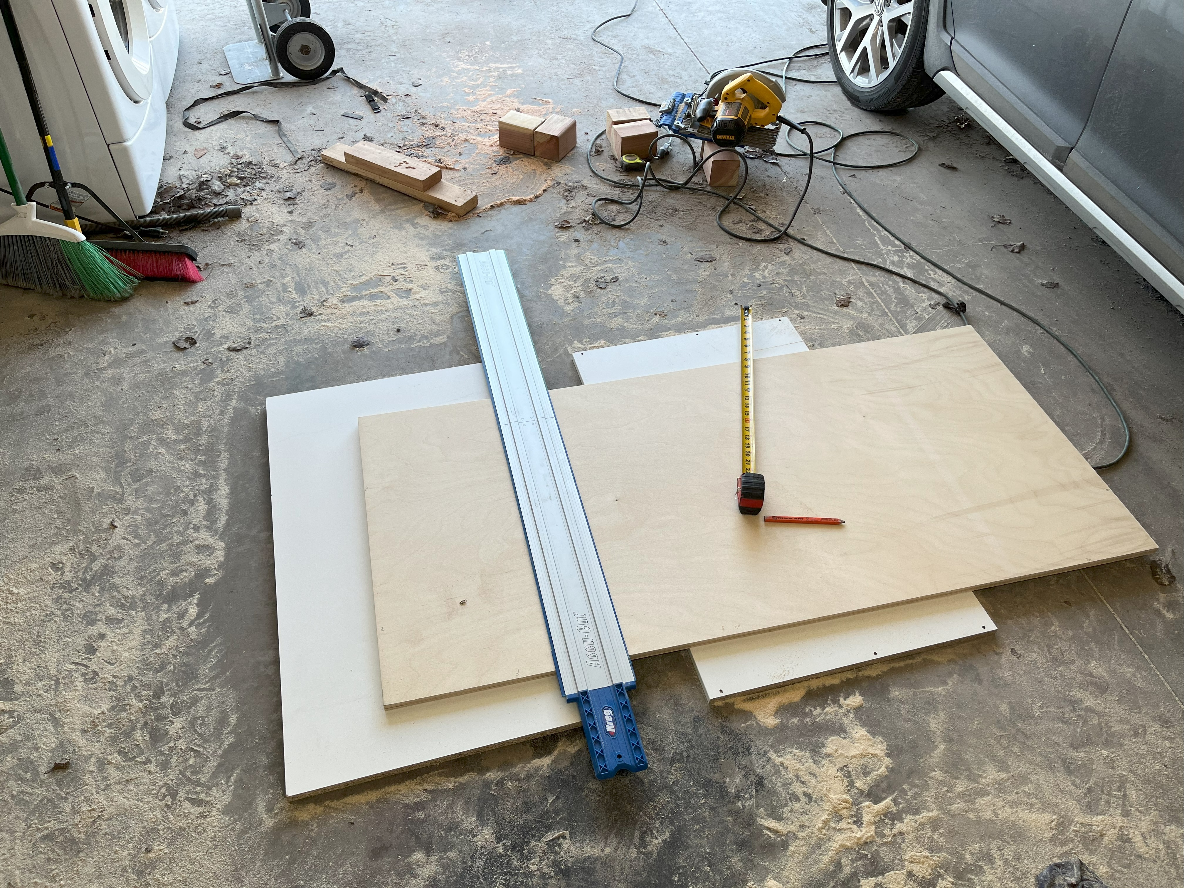 I've started the build of my four pi speakers out of baltic birch. I grew up with access to a full woodshop, but I don't have room for such things so a circular saw and a Kreg Accu-cut will have to do! I will be veneering them (probably walnut) so if my cuts are off by a hair it's okay (or so I tell myself)
